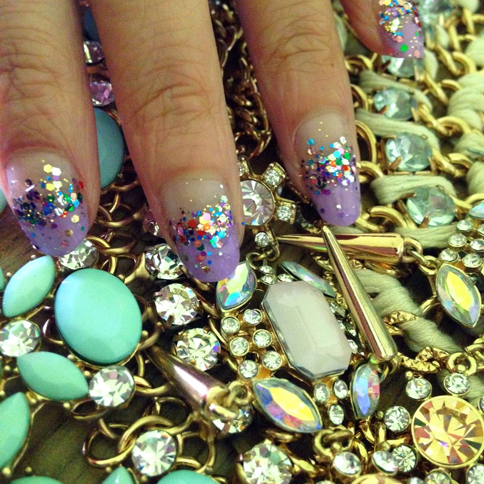 This easy nail tutorial glams up your nails instantly! All you need is a nice pastel colored nail polish and a glitter nail polish. First, paint two pastel layers on the top of half of your nails. Then paint the glitter coat on but paint two-third of the nail. Do this again but then take the top of half of your nail. At last, put one-third of the glitter coat on top. You will create this blending effect with every kind of glitter nail polish. Tip: Change the lilac color and take a nude base with silver glitters for a more subtile and romantic look!